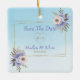 Moderne Kunst Deko Goldrahmen und Lavendel und beige Rose mit Blätter. Silberdiamanten in der Mitte mit Monogramm. Gradient-blauer Hintergrund