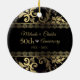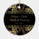 Eleganter goldener Damast und Spitze über schwarzem Hintergrund. Silberherzen und Goldherzen. 50. Jahrestag