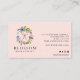 Schöne und elegante Visitenkarte für einen Friseur und Salon. In unserem Design finden Sie unseren wunderschönen Blumenkranz mit modernen und eleganten Vintagen Imitaten, die goldene Schere in der Mitte des Blumenkranzes. Angepasst mit Ihrem Firmennamen. Ein rot-rosa Hintergrund schafft einen femininen und schicken Look. Auf der Rückseite befindet sich das Blumenkranz- und Scheren-Logo mit Kontaktinformationen und Social Media-Icons. Alle Illustrationen sind handgezeichnet Originalwerke von Moodthology.