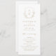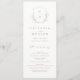 Mit Monogramm Initialen gerahmt durch elegantes Wappen und Hand illustrierte botanische Blätter, Ihre Veranstaltung Details in elegantem Drehbuch und klassischen Schriftart, einfach und luxuriös. Große Imitate Gold und Weiß für moderne klassische Hochzeit, einfache formelle Hochzeit, elegante botanische Gartenhochzeit. Sehen Sie sich alle passenden Stücke in der Sammlung an.