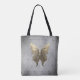 Trage alle deine Sachen, wenn du unterwegs bist, mit einer SchmetterlingsschmetterlingsTasche. Das Design der Tasche zeichnet sich durch einen lebhaften Schmetterling aus, der mit einem Vintagen, grauen Damast-Muster kontrastiert. Auch zusätzliche Geschenkartikel sind in diesem Design erhältlich.