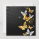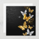 Gold, Schmuck und weiße Schmetterlinge auf schwarzem Hintergrund. Goldener Schmetterling.