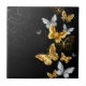 Gold, Schmuck und weiße Schmetterlinge auf schwarzem Hintergrund. Goldener Schmetterling
