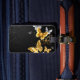 Gold, Schmuck und weiße Schmetterlinge auf schwarzem Hintergrund. Goldener Schmetterling