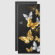 Gold, Schmuck und weiße Schmetterlinge auf schwarzem Hintergrund. Goldener Schmetterling.