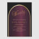 Eine elegante magnetische Einladung zum 90. Geburtstag. Schwarz und bordeauxrot mit goldenem Bogen auf der Vorderseite.