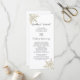 Geben Sie Ihren Gästen die Reihenfolge Ihrer Hochzeitsfeier im Dezember, Januar oder Februar mit dem eleganten Goldenen Schneeflocken Winter Wedding Programm. Dieses schicke Gold Snowflake wintery Nuptial Timeline-Programm bietet faszinierende Goldschneeflocken an den Ecken und einen weißen Hintergrund.