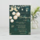 Elegante Weihnachtsbälle, Schneeflocke, Bogen und Saitenleuchten auf grünem Hintergrund. Diese wunderschönen Weihnachtseinladungen sind ideal für Weihnachts-Dinner-Party Einladungen, Feiertagsgeschenke-Austausche, Weihnachts-Spendenaktionen, Einladungen für den Weihnachtsball und andere Veranstaltungen, die im Dezember stattfinden. Verwenden Sie einfach die Vorlagenfelder, um eigene Ereignisinformationen hinzuzufügen.