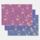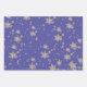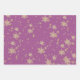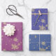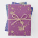 Ein elegantes, neutrales Urlaubspapier mit schimmernden, goldfaltenden Schneeflocken auf einem Trio mit lila, soliden Hintergrund.