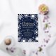 Dieses marineblaue Schneeflocken ist die Party Einladung des Dinner mit verschiedenen Schneeflockenformen und Funken. Sie können alle Ereignisdetails anpassen. Alle Texte und Illustrationen auf der Vorderseite liegen in Ihrer Wahl von Gold, Silber oder Rose Goldfolie. Auf der Rückseite des Designs ist ein Muster mit den gleichen Schneeflocken in weiß. Sehen Sie sich die gesamte passende Auflistung an. Alle Kunstwerke sind von Hand illustriert und urheberrechtlich geschützt.