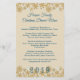 Weihnachtsmenü Vorlage gedruckt auf erschwinglichen, Flyer Papier. Oben und unten Rand von Goldschneeflocken mit dunkelblauem Text. Erstellen Sie einen Titel, fügen Sie das Jahr hinzu, und listen Sie die Menüwahl für ein spezielles Feiertagsfest an Weihnachten oder Weihnachten. Reverse hat das gleiche Schneeflockendesign auf dunkelblau.