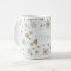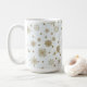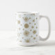 Weihnachts Klassische Goldschneeflocken und -dots glänzen in weißem Glitzer, gefüllt mit mehreren einzigartigen goldenen Sternen, Punkten und Schneeflocken geometrischen Formen, Imitaten, die goldenen Glitzer leuchten und leuchtend weiß, weißer Hintergrund. Der goldverschneite Himmel Abend im Winter fühlt sich wie Schneeflocken Kunstwerke, ist perfekt für die Weihnachtsfeiertage Dekoration.