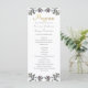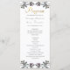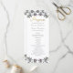 Alle Formulierungen zu diesem Hochzeitsprogramm können angepasst werden. Das Programm ist Teil einer Kollektion mit einem tropischen Blattwerk in Aquarellfarbe, das mit Imitaten goldene Schrift versehen ist. Ein elegantes und einfaches Design.