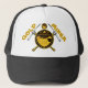 Ein cooler kundenspezifischer Goldförderungshut für den Goldbergmann oder den Goldförderungskulturfan der Familie. Kennzeichnet ein fantastisches kundenspezifisches Goldförderungs-Abzeichen und -hacken, die aus Gelbgold, dunklem Gold und schwarzem Emailfarbton heraus in Handarbeit gemacht werden. Das Abzeichen kennzeichnet ein großes Goldnugget auf mit Hacken beiseite und einer kundenspezifischen Goldförderungslandschaft unten. Ein Felsen-LKW, eine Wäsche-Pflanze und herrliche eine Naturszene breiten in einem atemberaubenden goldenen Stück aus. Genießen Sie!