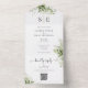Diese schicke, blumengeschmückte Hochzeitseinladung kann mit Ihren Monogramm-Initialen und den Informationen zum Hochzeitstag personalisiert werden. Die Einladung enthält eine perforierte RSVP-Karte, die Ihren QR-Code für Ihre Hochzeitswebsite enthält. Entwickelt von Thisisnotme©