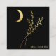 *~* Energie erhöhte geheime MINIMALE EINFACHE KOSMISCHE HIMMLISCHE MYSTISCHE MondVisitenkarte: Sichelförmige Mond und GOLDBlätter-LAUB-GRÜN-Illustration auf einem SCHWARZEN Hintergrund.