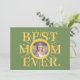 Gelbe Sonne mit glitzerndem Sonnenschein Muttertag Brauch 3 Fotos personalisiert Beste Mama je Weise grün Grußkarte mit Imitaten Gold fette Typografie und eine handgeschriebene Schrift und Unterschrift. Auf beiden Seiten einfach zu personalisieren!