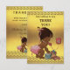 Elegante kundenspezifische personalisierte Vintage ethnische Mädchenbabydusche danken Ihnen, Schablone zu kardieren für Babymädchen mit einer schönen Vintagen Illustration eines niedlichen und entzückenden afrikanischen amerikanischen Babymädchens mit stilvoller rosa Windel und des rosa Bogens in ihrem Haar mit schleppenden Bändern. Sie schellt Sie an einem alten roten Retro Telefon, um zu sagen dankt Ihnen! Sie hält einen kleinen Koffer und ihr schrulliger Teddybär lehnt sich an ihm - sie wird ganz oben verpackt und vorbereitet für ihre Ankunft!! Der Hintergrund ist Bilder einer bezaubernde Imitatgoldfolie mit einem noble Goldsparren-Grenz- und des dunklen Braunstext. Der Chic, trendy, bezaubernd, girly, Spaß, moderne, wunderliche, erschwingliche personalisierte/personalisierte kundenspezifische Babydusche danken yous Vorlagen für Babymädchen. Verziert auf beiden Seiten. Die hintere/Rückseite hat den gleichen Entwurf. Doppeltes versah Drucken/Front und Rückseite mit Seiten. Wenn Sie irgendeine Unterstützung benötigen, die Ihr Produkt in Verbindung treten besonders anfertigt mit mir bitte, durch meinen Speicher und ich bin glücklich zu helfen. MERKEN SIE BITTE: - Alle Einladungen auf Zazzle haben Ebenedruckbilder - nicht wirkliche Goldfolie.