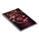 Ein dunkelbordeauxfarbenes Imitat mit metallisch anmutendem Hintergrund und tropfenden Imitaten mit goldenen Sternen. Die Einrichtung besteht aus einem geometrischen Rahmen in den Imitaten mit goldenem Rahmen und bordeauxroten, rosa und goldfarbenen Blume mit Blumenmotiven. Personalisieren und fügen Sie Ihre Monogrammbuchstaben, -initialen.