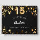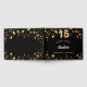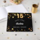 Ein stilvoller schwarzer Hintergrund mit goldenen Imitaten. Fügen Sie Ihren Namen und Text hinzu. Die Altersnummer wird mit einem Schriftart im Ballonstil geschrieben.