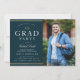 Eine elegante Einladungskarte für den Foto-Abschluss mit Blau-Weiß-Farben und einem Imitat mit Goldstreifen. Die Textdetails und das Bild können personalisiert sein.