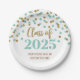 Maßgeschneiderte Graduierungsparty-Klasse von 2025 Tellern in glamourösen, türkisfarbenen Konfetti-Mustern und eleganten handgeschriebenen Stil-Text.
