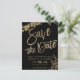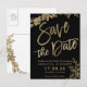 Gold Typografie Blatt florale schwarze chic Hochzeit speichern das Datum Wedding Invitation Collection. Schicken Sie Ihre Save the Date Karte mit dieser eleganten Imitat Goldtypografie mit Blattfoliage auf schwarzem Hintergrund, ideal für eine Hochzeit im eleganten Stil