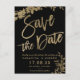 Goldtypografie Blatt blorschwarz Save the Date Ankündigungspostkarte