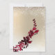 Eine moderne, schicke und elegante Goldtypografie floralrot bordeauxfarbene Weihnachtsweihnachtsweih-Party Einladung mit handgemalten roten Wasserfarbenblättern auf einem schicken gelben Gefälle mit weißem Schnee und Schneeflocken.