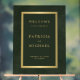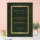 Moderne klassische dunkle Smaragdgrün und Imitate goldene trendige minimale Typografie maßgeschneiderte Acryl opaken Hochzeitsschild Vorlage. Geeignet für eine formelle elegante Hochzeit.