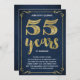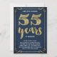 Diese geschmackvolle Party Einladung zum 55. Geburtstag der Hochzeit mit Vintager Typografie, eleganten Schnörkeln, Kalligraphie der Pinsel, Imitaten mit Goldfolie und einem schicken marineblauen Hintergrund.
