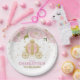 Schließen Sie Ihr Party mit diesen PapierTeller des wunderlichen Rosas und Goldblumenprinzessin ab. Personifizieren Sie es mit Ihren Details leicht und schnell, drücken Sie einfach besonders anfertigen es Knopf, um die Art und die Platzierung des Textes weiter neu zu ordnen und zu formatieren. Dieser Chicentwurf ist für Geburtstags-Party, Babydusche, Taufe und viel mehr groß.