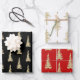 Goldwaldlandspruce Trees Schwarz-weißer Urlaub Rot Geschenkpapier Set