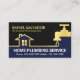 Cover verfügt über eine Zuhause-Randlinie, die eine schwarze obere Schicht von einem dunkelblauen Teil abgrenzt. In der oberen Ecke befindet sich Ihr goldener Prestigename und eine Slogan-Beschriftung. Sie können die Beschriftungen in den Slogan ändern, um Ihre eigenen Werbebedürfnisse Anzug. In der Nähe der Basis, in der blauen Wasserschicht, ist der Firmenname und seine Kontaktdaten. Auf der Rückseite, in einem weißen Cover, oben ist das goldene Wasserhahn-Logo, das Sie benutzen können. Danach folgen Ihr Name, die Kontaktdaten und ein Slogan, um Ihre Dienste bekannt zu machen. Ein großartiges kreatives Cover für Installateure.