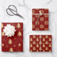 Goldweihnachtsbaum und Poinsettia-Muster auf Rot Geschenkpapier Set