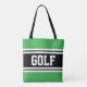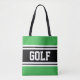 Dieses sportliche, sportliche Design zeichnet sich durch feinen GOLF-Text in einem schwarz-weiß hervorgehobenen Rennstreifen gegen leuchtend grüne Außenstreifen aus. Der Text in diesem Design kann personalisiert sein.
