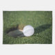 So nah! Foto eines Golfballs, der fast im Loch ist.