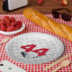 Nahes, weißes Golfgelände mit einem Golfclub für die 44. Geburtstagsfeier. Alter ist essbar. Anzahl und Golfclub können gelöscht werden.