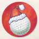 Golf-Ball in der Weihnachtsmannmütze auf Rot Runder Pappuntersetzer