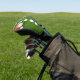 Golf Ball Weihnachten mit dem Weihnachtsmann auf dem grünen Golf Head Cover