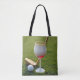 Ein einzigartiges Weinglas in Form eines Golfballs, teilweise mit Rotwein gefüllt, liegt auf einem üppig grünen Rasen neben einem Golfclub und einem Ball