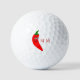 Golfbälle roter Chili Pfeffer Design. Sie können diese Golfbälle mit jedem beliebigen Text Ihrer Wahl anpassen. Wenn Sie Hilfe bei der Anpassung benötigen, kontaktieren Sie uns über den Link auf dieser Seite. Pfefferpüree-Monogramm-Golfbälle