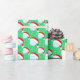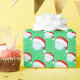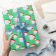 Dieses festliche Weihnachtsgeschenkpapier enthält einen in Weihnachtsmannmützen gekleideten Golfball, umgeben von glitzernden weißen Schneeflocken auf einem fröhlichen, greeb Hintergrund.
