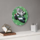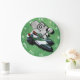 Golf beschuht Ball und Handschuhe auf Grün mit Große Wanduhr