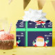 Creative golf holiday gift wrap featuring funny Santa golfer with a club and glowing golf ball. To personalize edit text to add name or otherwise customize.
