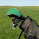 Dieses Cover des Golfclubs ist in schwarz mit grüner Akzent und weißer Rohrleitung dargestellt. Passen Sie dieses Objekt an oder kaufen Sie, wie es ist.