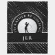 Perfektes Design für Ihren Lieblinggolfer! Dieses individuelle Design zeichnet sich durch ein männliches Golfer-Silhouette-Set auf einem realistischen Golfball-Image aus. Der Golfball wird auf einem schwarzen Kreis platziert, der mit kurvigem Text "I'd RATHER BE GOLFING" in weißem Schriftart umgeben ist. Ein passendes schwarzes Band enthält eine Vorlage für mit Monogramm Initialen oder kurzen benutzerdefinierten Text. Der Hintergrund ist schwarz mit einem modernen abstrakten Muster weißer Kreise. Alle Farben in diesem Design können individuell angepasst werden! Wenn Sie Fragen zu diesem oder einem meiner Designs haben, wenden Sie sich bitte an beachpausedesigns@gmail.com. Benutzerdefinierte Anforderungen akzeptiert.