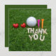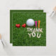 Golf danke Ihnen mit dem Golfball und zwei T-Shirts auf grünem Gras.