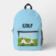 Golf Design Back Pack mit anpassbarem Text und Hintergrundfarbe.