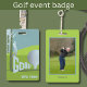 Dieses Abzeichen eignet sich für kleine, selbstorganisierte Golfturniere oder für Gedächtnissammlungen und die Analyse von Schallplatten. Es zeichnet sich durch ein modernes Design von Golfer und Golfball auf der Vorderseite aus, mit dem Wort "Golf" in großem Text auf einem grünen blauen Hintergrund. Auf der Rückseite ist Platz für ein Foto. Die Textoptionen sind vollständig anpassbar.